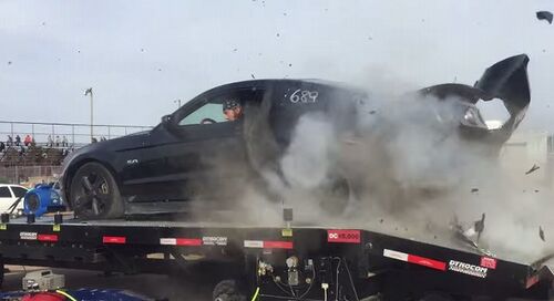 ダイノマシンで出力テストをしていたフォード「マスタング」のタイヤが破裂してしまった映像 これが走行中だったら・・・