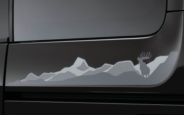 また、「JASPER」のデカールをテールゲートに、広大な山並みやヘラジカを描いたデカールをボディサイドに配し、アウトドアレジャーシーンに映えるデザインに仕上げ。