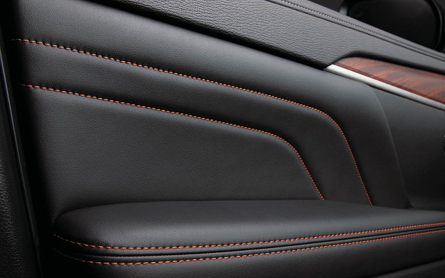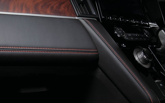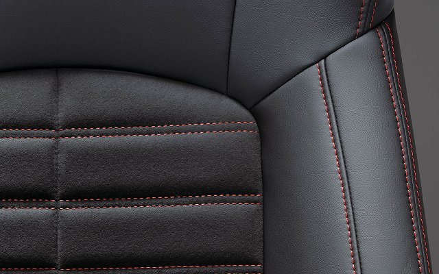 シート生地には、アウトドアレジャーで使い勝手のよい、撥水機能を付加したスエード調人工皮革「グランリュクス」にブラウンステッチを施し、心地よい手触りに加え、滑りにくい立体的なボーダーキルティング形状とすることで機能的シートとし、インストルメントパネルやドアトリムにもシートと同様のブラウンステッチをあしらうことで、統一感のあるインテリアとされています。